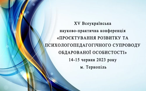 XV Всеукраїнська науково-практична конференція «ПРОЄКТУВАННЯ РОЗВИТКУ ТА ПСИХОЛОГОПЕДАГОГІЧНОГО СУПРОВОДУ ОБДАРОВАНОЇ ОСОБИСТОСТІ» 14-15 червня 2023 року м. Тернопіль