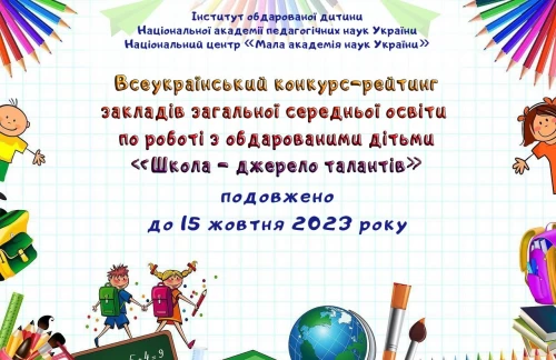 Інститут обдарованої дитини НАПН України оголошує про завершення Всеукраїнського конкурсу-рейтингу загальноосвітніх навчальних закладів по роботі з обдарованими дітьми «Школа –...