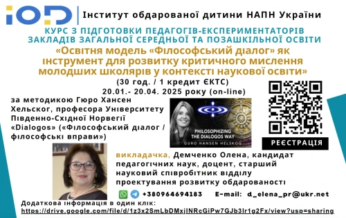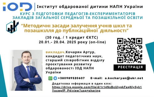 Інститут обдарованої дитини НАПН України у 2022-2023 н.р. проходить процедуру акредитації освітньо-наукової програми «Освіта та розвиток обдарованої особистості» зі спеціальності...
